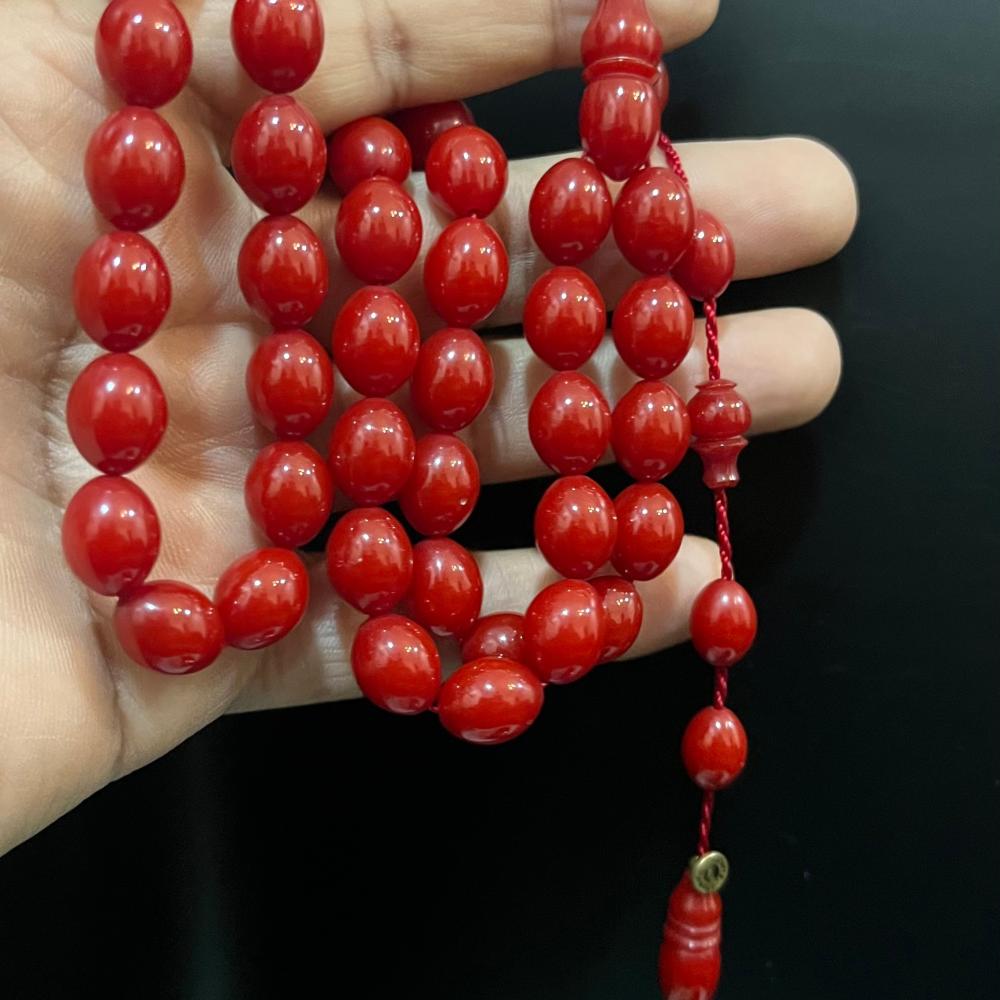 الخامة مايسمى بالبكلايت خفيفة الوزن مصممة للاستخدام اليومي، تتميز بتصميم مريح وأنيق، عليها كركوشة حياكة يدوية مما يعطي السبحة جمال وفخامة.